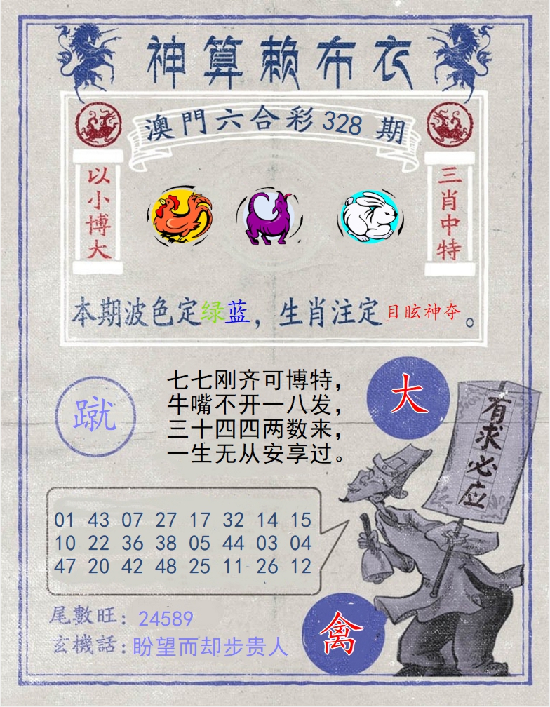 | 327期:国士无双【绿波蓝波】开:蛇37准 |